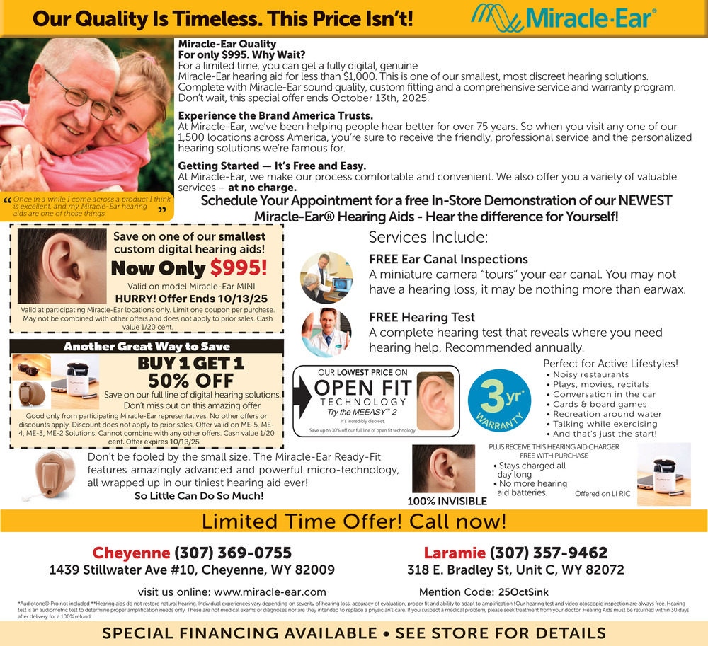 Oct 01, 2025. Miracle-Ear Health & Wellness Ads from Wyoming Tribune Eagle