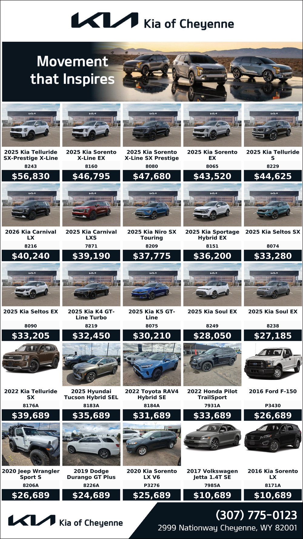Oct 02, 2025. Kia of Cheyenne Auto Dealers Ads from Wyoming Tribune Eagle