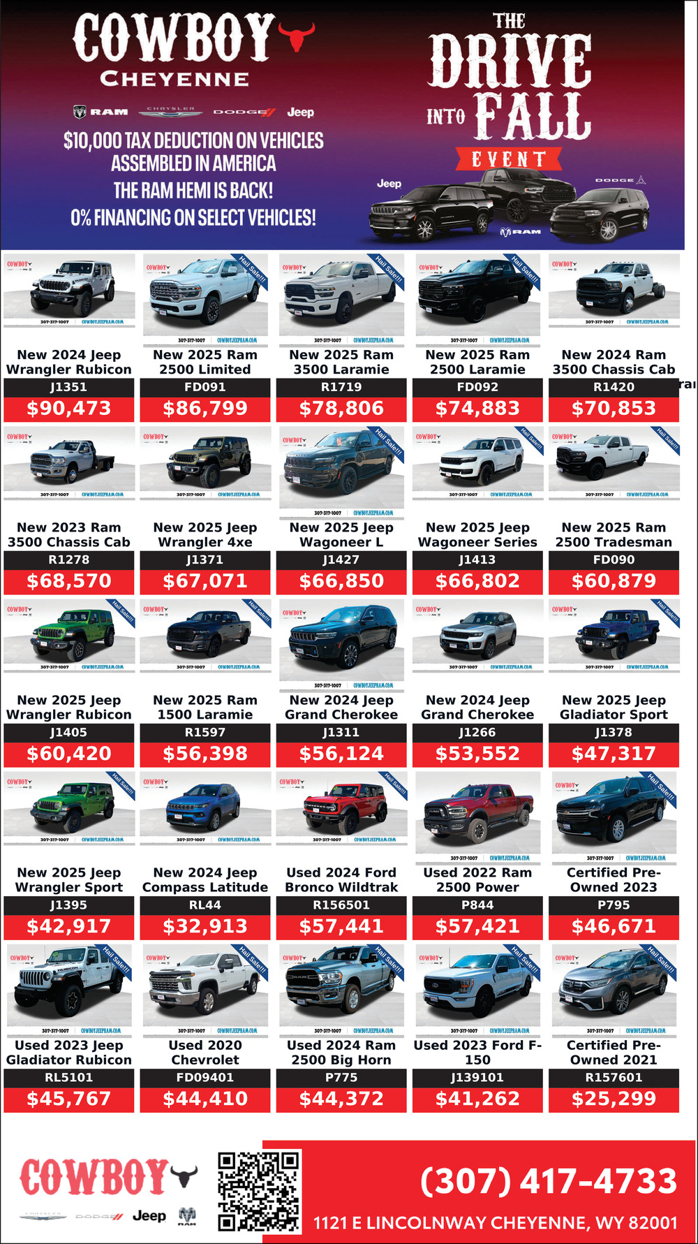 307-240-81161121 E LincolnwayCheyenne, WY 82001(Cowboy Dodge Chrysler Jeep RAM)