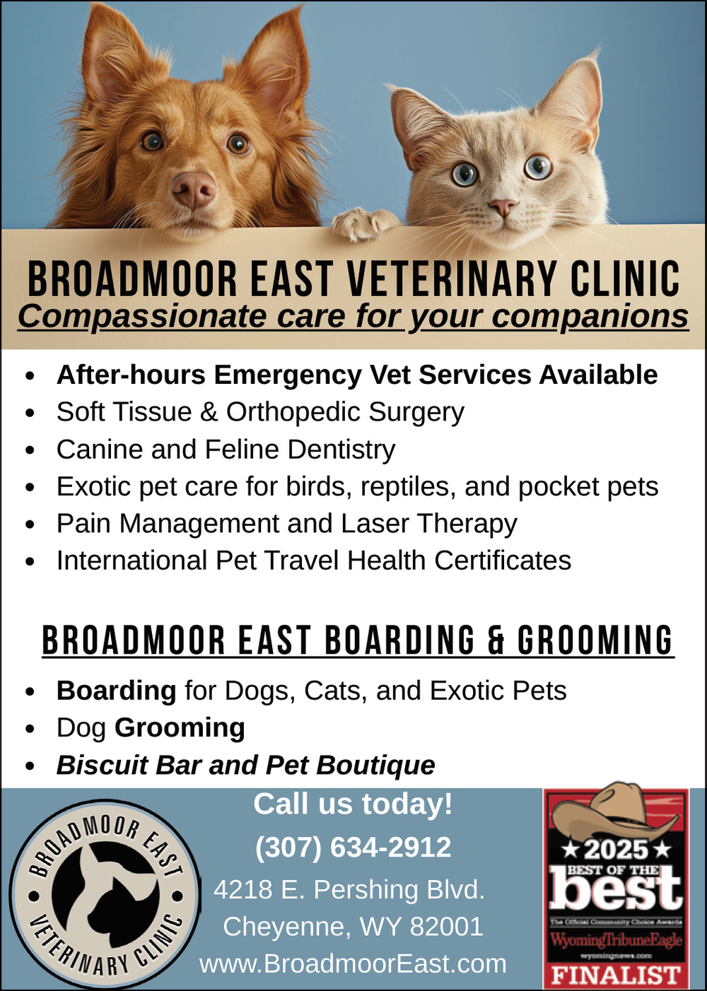 Oct 18, 2025. Broadmoor East Veterinary Clinic Pets Ads from Wyoming Tribune Eagle