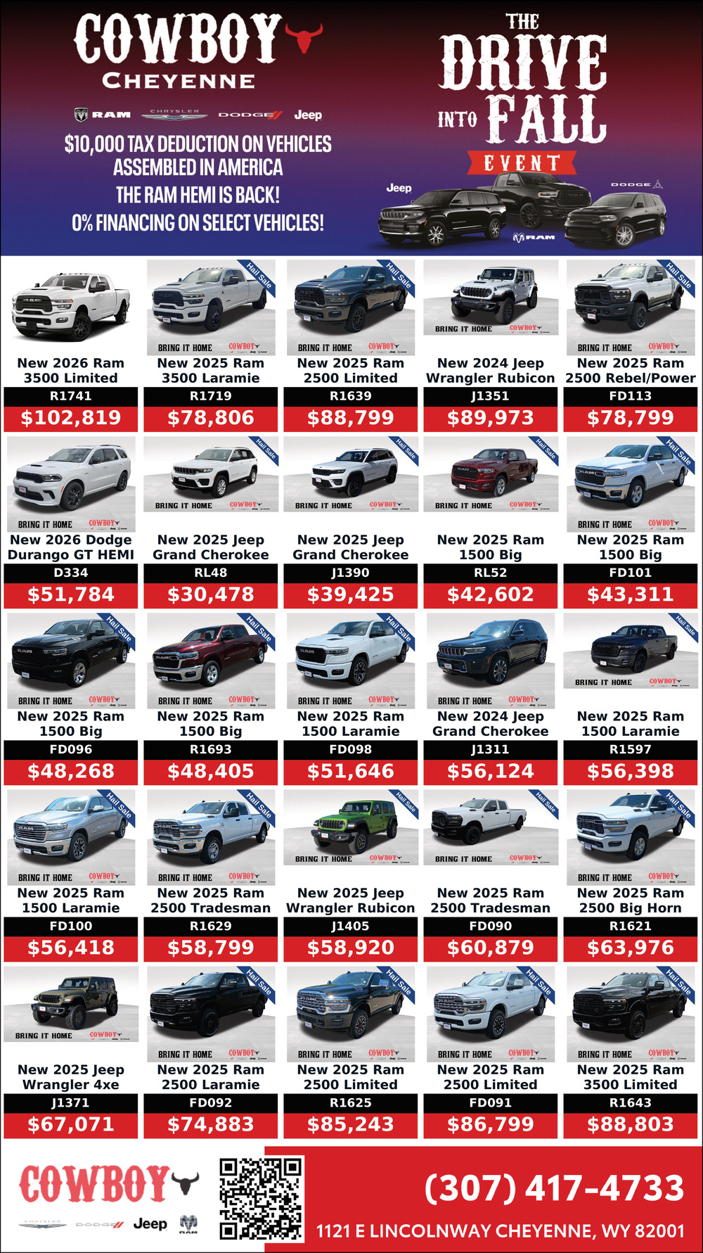 307-240-81161121 E LincolnwayCheyenne, WY 82001(Cowboy Dodge Chrysler Jeep RAM)