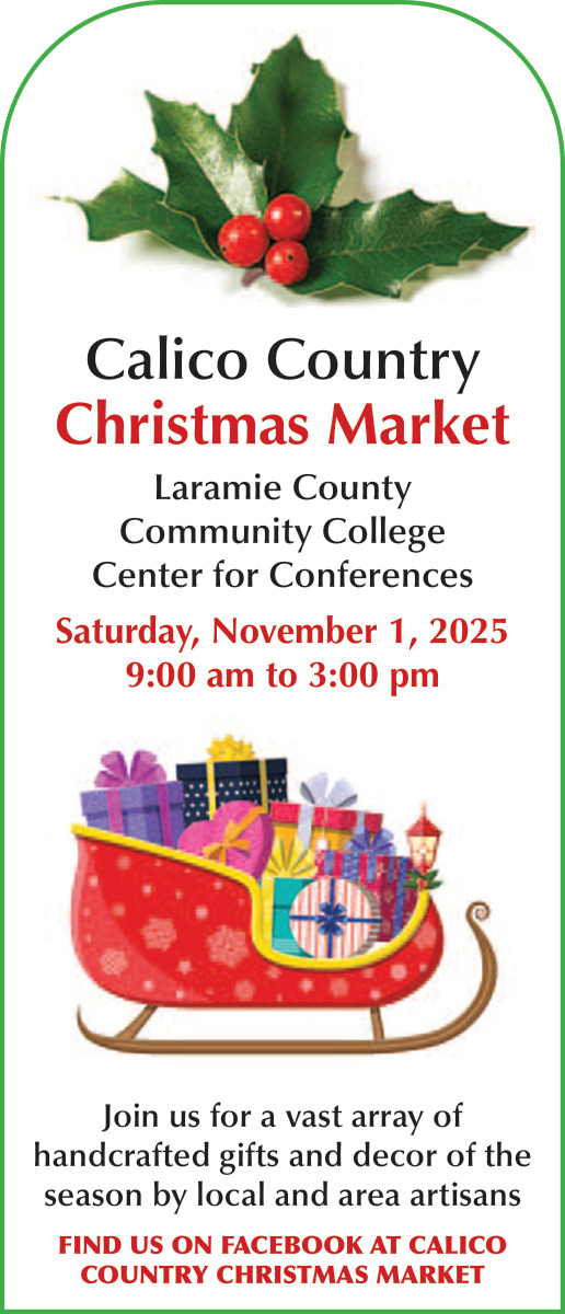 Oct 29, 2025. Calico Country Christmas Market (November 1, 2025) Events Ads from Wyoming Tribune Eagle