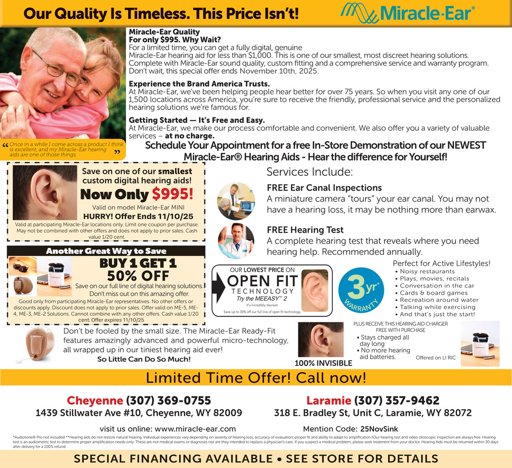 Nov 01, 2025. Miracle-Ear Health & Wellness Ads from Wyoming Tribune Eagle