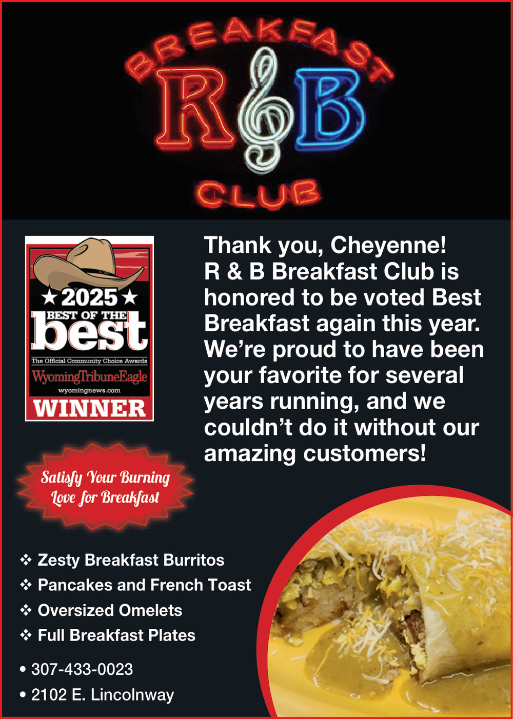 Nov 05, 2025. R&B Breakfast Club Restaurants Ads from Wyoming Tribune Eagle