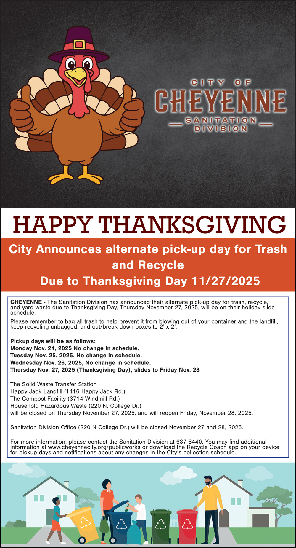 Nov 22, 2025. City of Cheyenne Sanitation Division Notice Ads from Wyoming Tribune Eagle