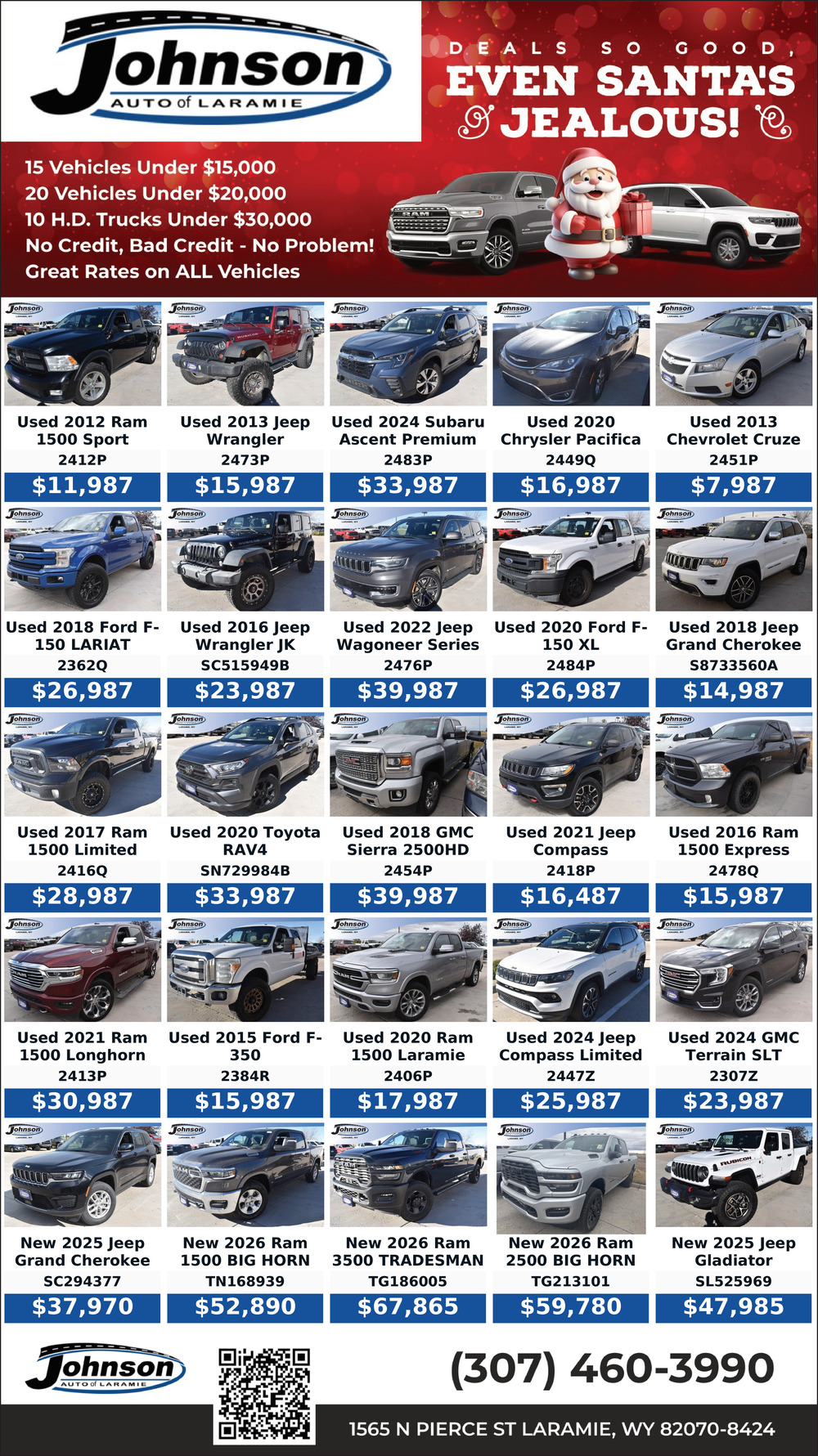 Dec 05, 2025. Johnson Auto of Laramie Auto Dealers Ads from Wyoming Tribune Eagle