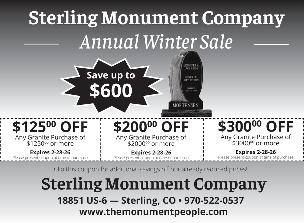 Jan 14, 2026. Sterling Monument Company Funerals & Obituaries Ads from Wyoming Tribune Eagle