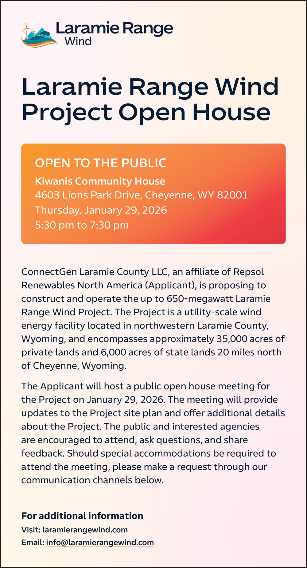 Jan 24, 2026. Laramie Range Wind - Laramie Range Wind Project Informational Meeting (June 17, 2025) Events Ads from Wyoming Tribune Eagle