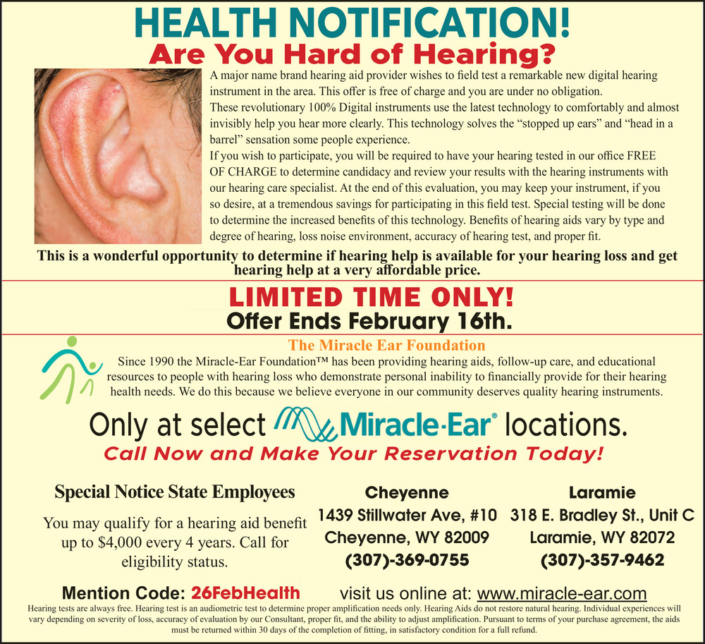 Mar 11, 2026. Miracle-Ear Health & Wellness Ads from Wyoming Tribune Eagle