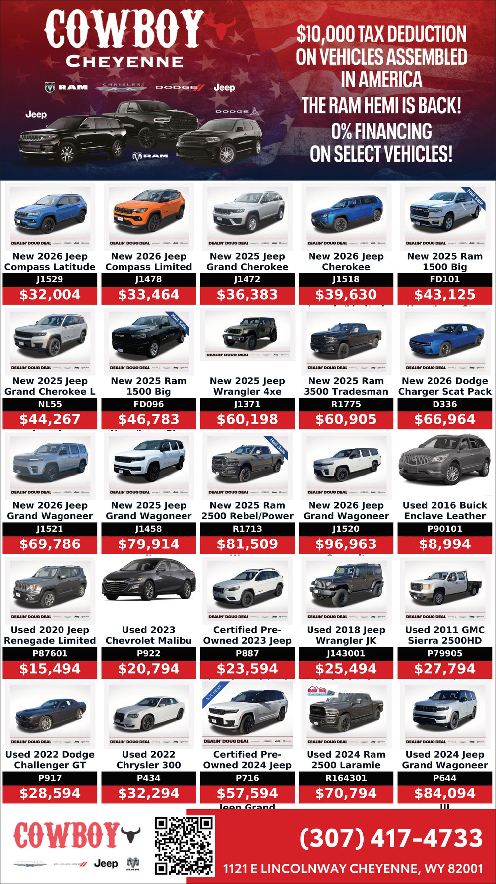 307-240-81161121 E LincolnwayCheyenne, WY 82001(Cowboy Dodge Chrysler Jeep RAM)