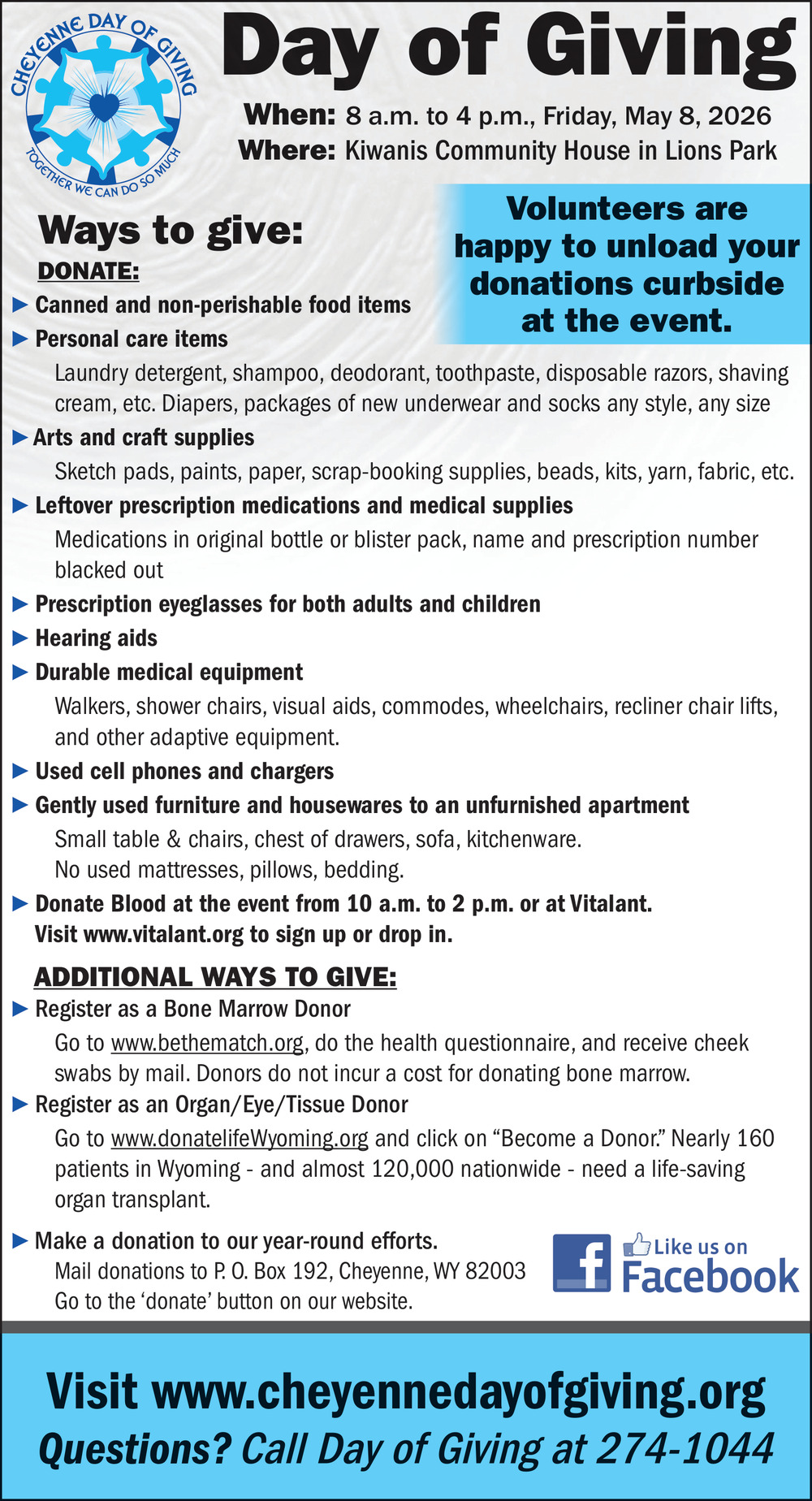 Apr 18, 2026. Cheyenne Day of Giving Events Ads from Wyoming Tribune Eagle